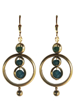 Clean design, easy to wear brass rings with faceted apatite beads with a brass ball dangle on 22K vermeil lever back earring backs.