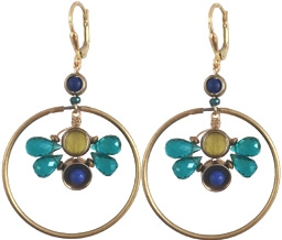 Elegant show stopper earring made with hydro-crystal faceted 'petals', olive jade and vintage glass accents on new and vintage brass findings on 22K vermeil lever back earring fixtures. 2"W x 2.33"L