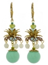 New jade faceted dangles around a vintage plastic drop with crystal beads on top and brass caps with 22K vermeil leverback earring fixtures. 2" L x 3/4" W