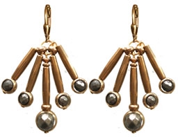 Elegant deco brass rays with pyrite beads on 22K vermeil lever back earring fixtures. 2"L x .75"W