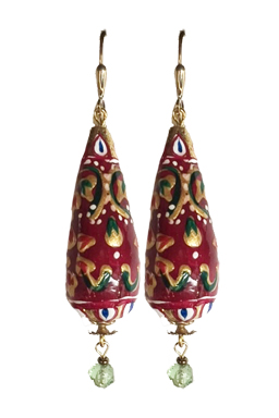 Handpainted Fabrege Egg inspired drop earring with vintage accent beads on 22K vermeil leverback earring fixtures. 2.5"L x .6"W