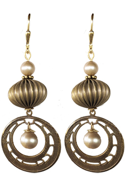 Vintage brass findings with champagne pearls on 22K vermeil lever back earring fixtures.