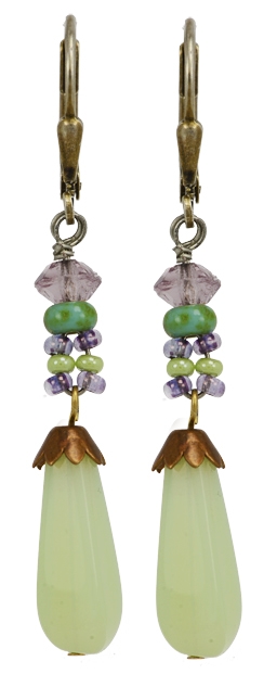 1920's crystal rondels with new glass beads and copper bead caps on 22K vermeil leverback earring fixtures. 1 1/4" L x 1/4" W