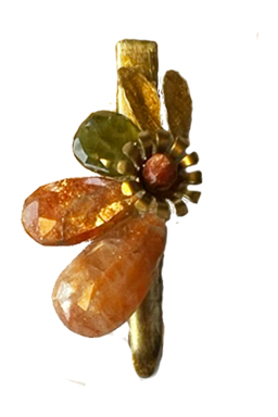 Sturdy antiqued brass alligator clip that tightly holds a swath of hair well-with an array of sparkly sunstone with olive chalcedony gemstones with vintage brass findings.
