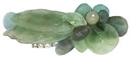 Vintage bonsai glass leaves with faceted labradorite and chalcedony and vintage rhinestone accent on 3.5" french barrette fixture. 4"L x 2.25"W