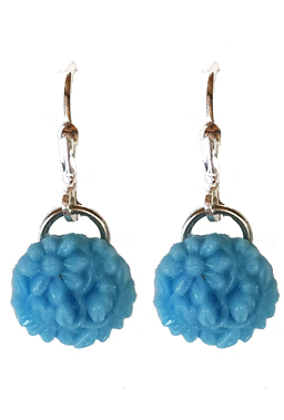 1940's sky blue Japanese floral glass on sterling silver lever back earring fixtures.
