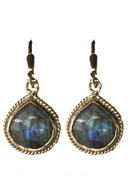 Vermeil bezeled labradorite faceted charms on 22K vermeil lever back earring fixtures. 1.25"L x .5"W