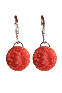 1940's coral Japanese floral glass on sterling silver lever back earring fixtures.