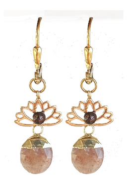 Brass lotus top with 1920's glass accent atop vermeil topped sunstone drops on 22K vermeil lever back fixtures.