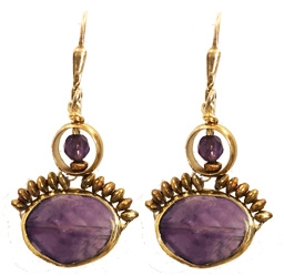 Faceted amethyst ovals encased in vermeil bezels with brass & amethyst accent beads on 22K vermeil lever back fixtures. 1.5"L x .75"W