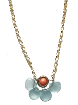 Faceted chalcedony petals with a coral bead center make this small delicate floral inspired choker length necklace on fine 22K gold fill chain with a 2" extender chain. Great stacked with N-Scalloped Coral drop necklace.