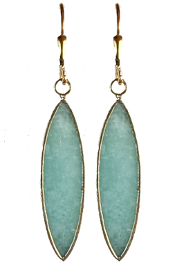 Vermeil bezel surrounds amazonite on 22K vermeil lever back earring fixtures.