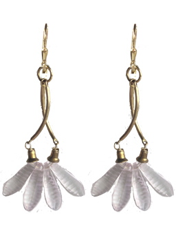 Elegant art nouveau inspired design made with fancy pale pink colored glass leaves and brass links on 22K vermeil lever back earring fixtures. 2"L x 1"W