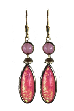 Opal looking lightweight resin stones in bezel setting accented by brass findings and fdyed new jade beads on 22K vermeil lever back earring fixtures.