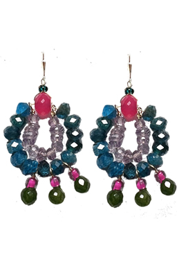 Colorful mix of faceted teal apatite, amethyst, Taiwan jade and hot pink new jade with seed bead accents on sterling silver lever back earring fixtures.