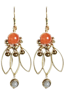 Elegant, airy lightweight drops with dyed glass with angelite beads encased in brass rings with brass findings on 22K vermeil leverback earring fixtures (sterling silver dipped in 22K gold fill).