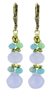 Faceted lavender chalcedony drops with faceted chrysoprase with new faceted crystal beads on 22K vermeil lever back earring fixtures. 2"L x .5"W
