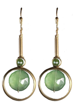 Faceted African Jade surrounded in brass rings on 22K vermeil lever back earring fixtures.