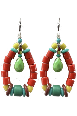 African glass beads with dyed faceted pistachio green center teardrops with Chinese turquoise top accents on sterling silver lever-back earring fixtures.