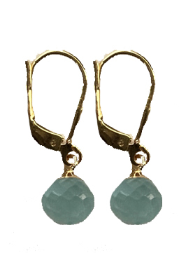Vermeil bezel atop pale aqua chalcedony on 22K vermeil lever back earring fixtures.