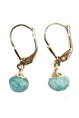 Vermeil bezel around faceted amazonite teardrop on 22K vermeil lever back earring backing. .5"L x .25"W