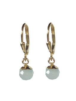 Vermeil bezel around faceted aqua chacedony teardrop on 22K vermeil lever back earring backing. .5"L x .25"W